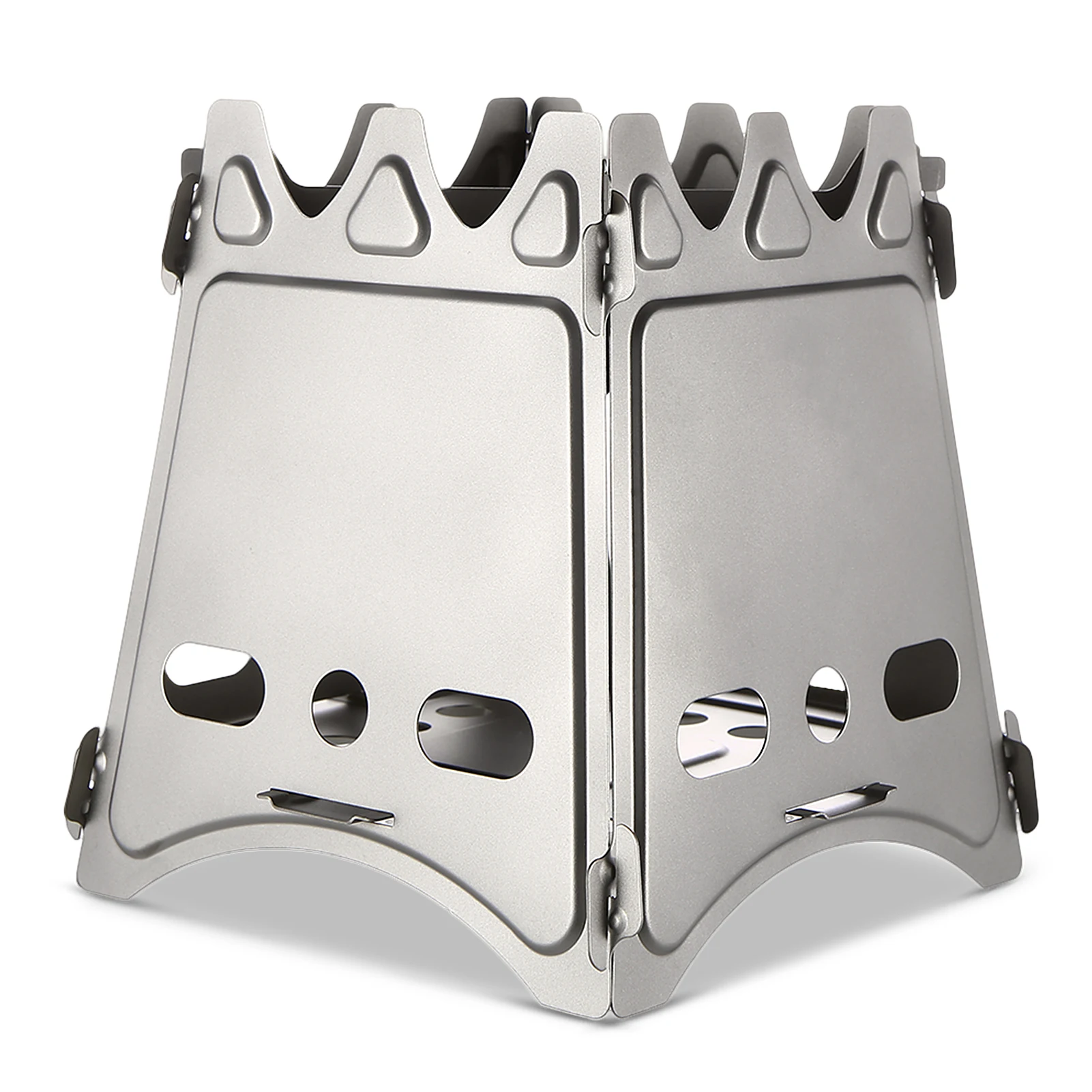 The Lixada titanium folding wood stove is a durable and efficient cooking tool for outdoor enthusiasts. Made from high-quality titanium, it is lightweight, rust-resistant, and built to withstand high temperatures. Its foldable design allows for compact storage and easy transport in your camping pack. This eco-friendly stove uses natural fuels like wood, leaves, and twigs—no need for gas or fuel canisters. It provides strong and steady heat, perfect for cooking meals or boiling water outdoors. Setup takes only seconds, making it convenient for quick use during hiking or picnics. The open design ensures excellent airflow for efficient combustion and consistent flame output. Despite its small size, it offers great stability and supports pots, pans, or kettles securely. Ideal for camping, survival trips, and outdoor cooking, this stove is both practical and reliable. Wherever your adventures take you, this titanium wood stove is the perfect lightweight cooking companion.